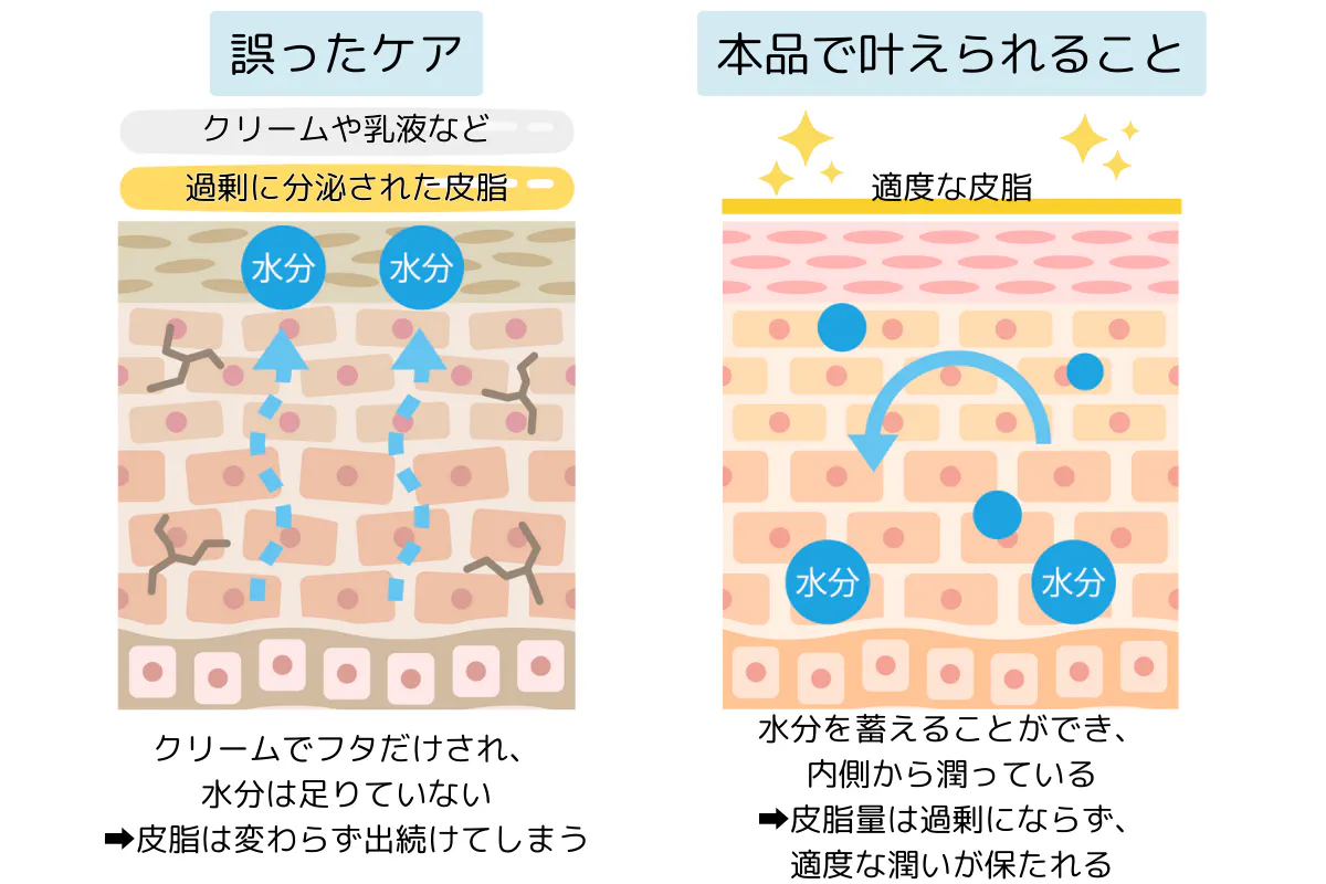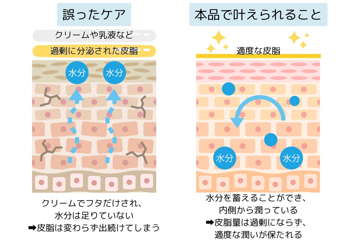 ・過剰な皮脂を根本から解決するための、水分・油分のバランスを整える処方設計