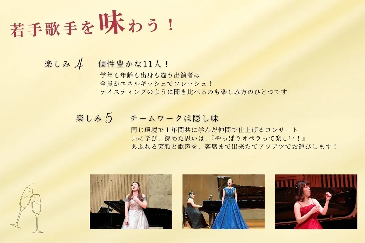 いろいろなオペラと、いろいろな歌い手を、一度に”めしあがって”満喫してほしい、そんな思いを込めました。