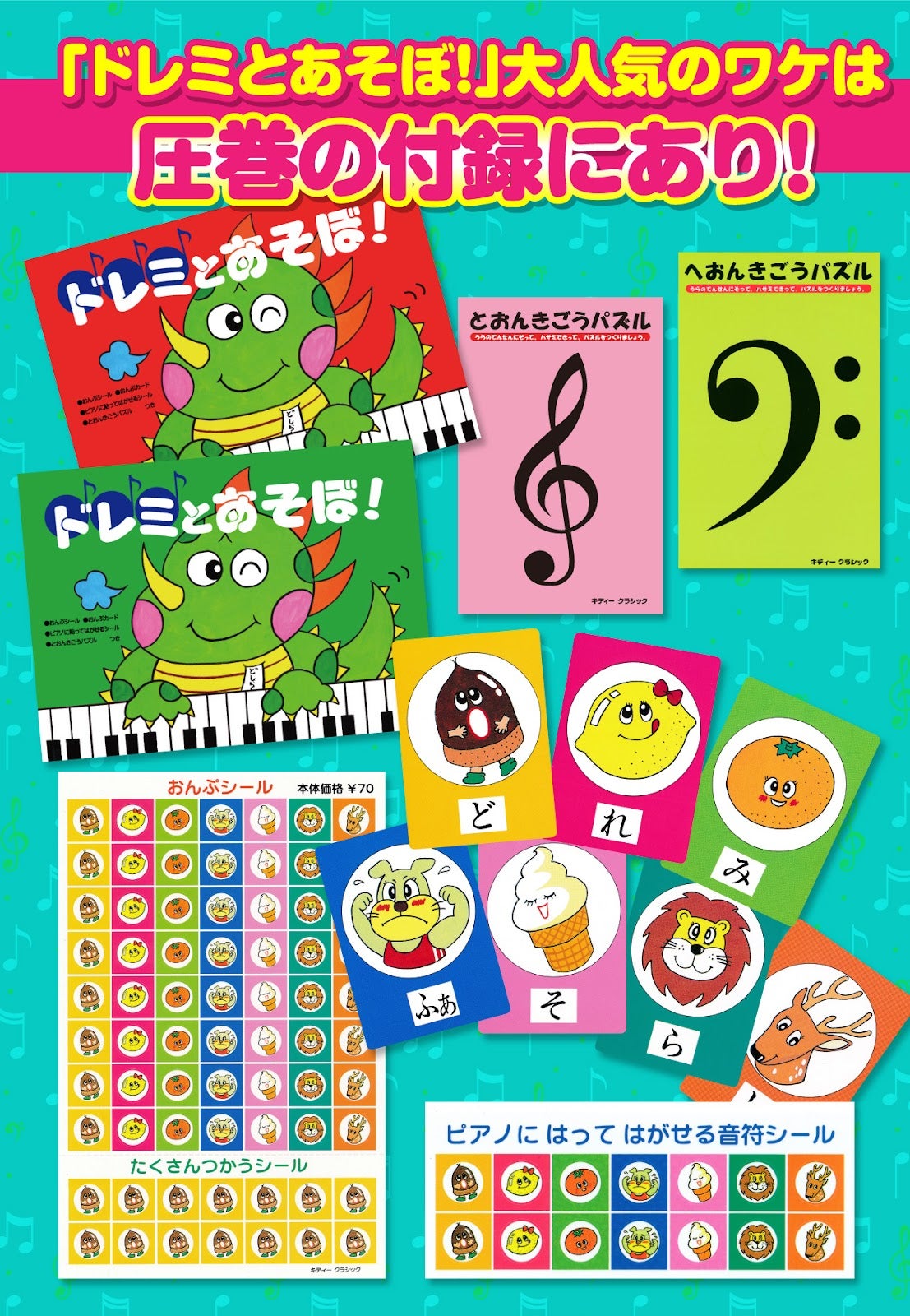 *ドレミとあそぼ(ト音記号編・へ音記号編)と音符カードはそれぞれ販売小売希望価格1,650円(税込)となります