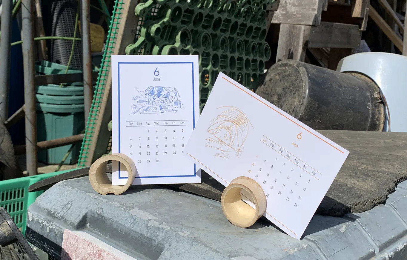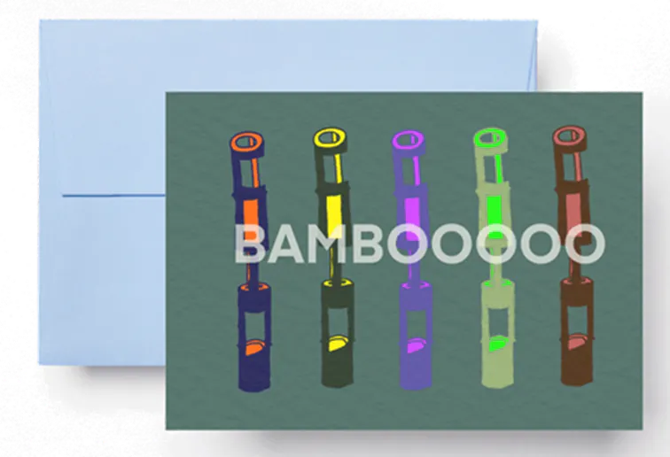 バリ島でのスケッチを掲載した特別な一冊に仕上げます。ペーパースタンドには本物の竹を使用!竹の美しさを最大限に活かした竹屋のジローさん(竹職人)とのコラボデザインです。※はがきサイズ100mm×148mm