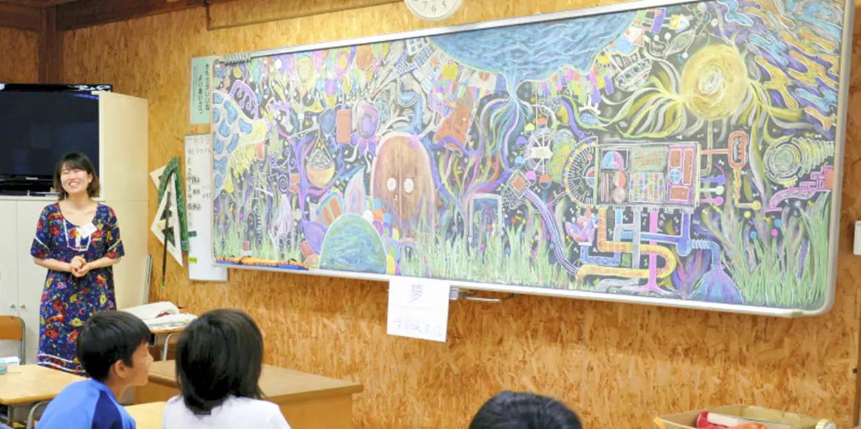小学校での黒板アート活動を通じて、「何かを感じることの大切さ」や「自分だけのものさしを持つこと」 を伝えています。黒板いっぱいの絵に触れた子どもたちは、それぞれの想像を広げ、自由に感じ、考えます。感性に正解はなく、世界の見え方は無限に広がる ことを、彼ら自身が体験として受け取っている瞬間がとても尊く感じます。