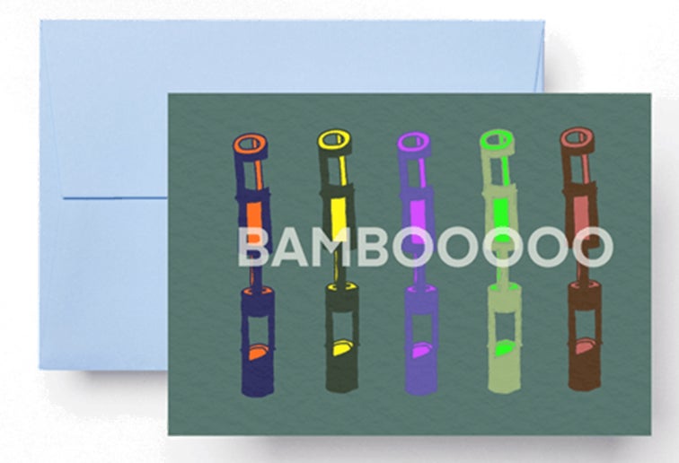 バリ島でのスケッチを掲載した特別な一冊に仕上げます。ペーパースタンドには本物の竹を使用!竹の美しさを最大限に活かした竹屋のジローさん(竹職人)とのコラボデザインです。※はがきサイズ100mm×148mm