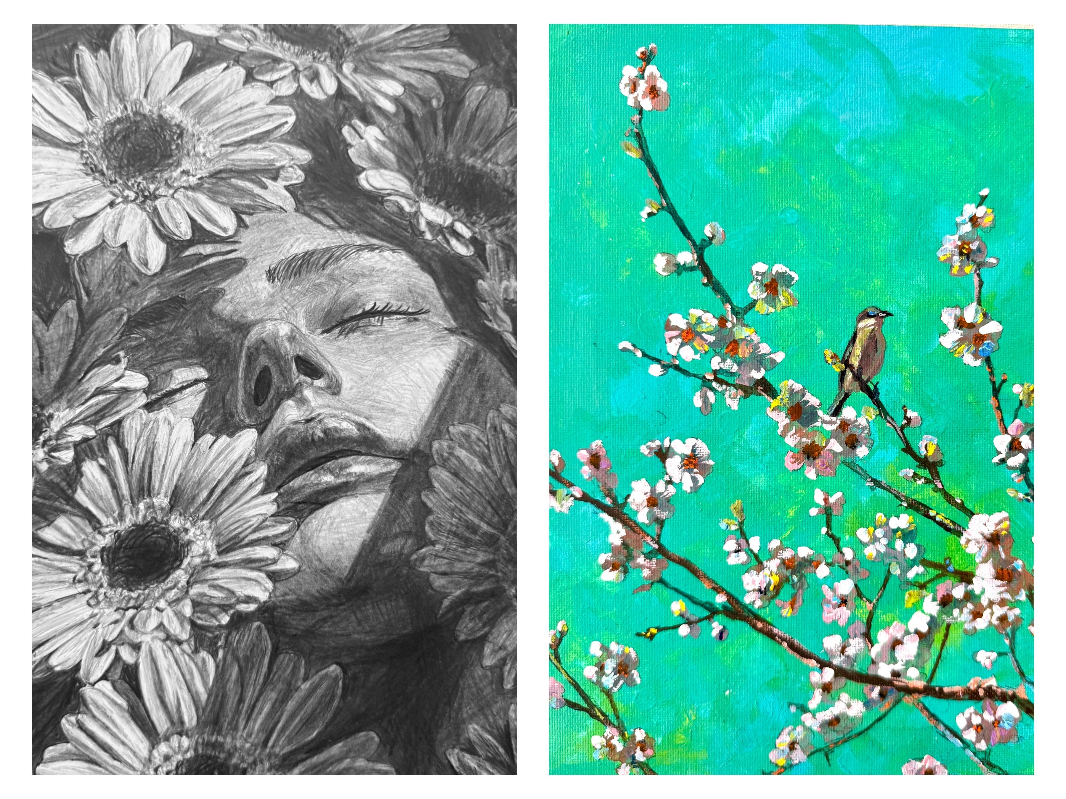 ・闘病の姿を映しながら、生きる眼差し・困難と闘う力・日常の煌めきをテーマに花を交えた絵画作品をSNSにて発信。
