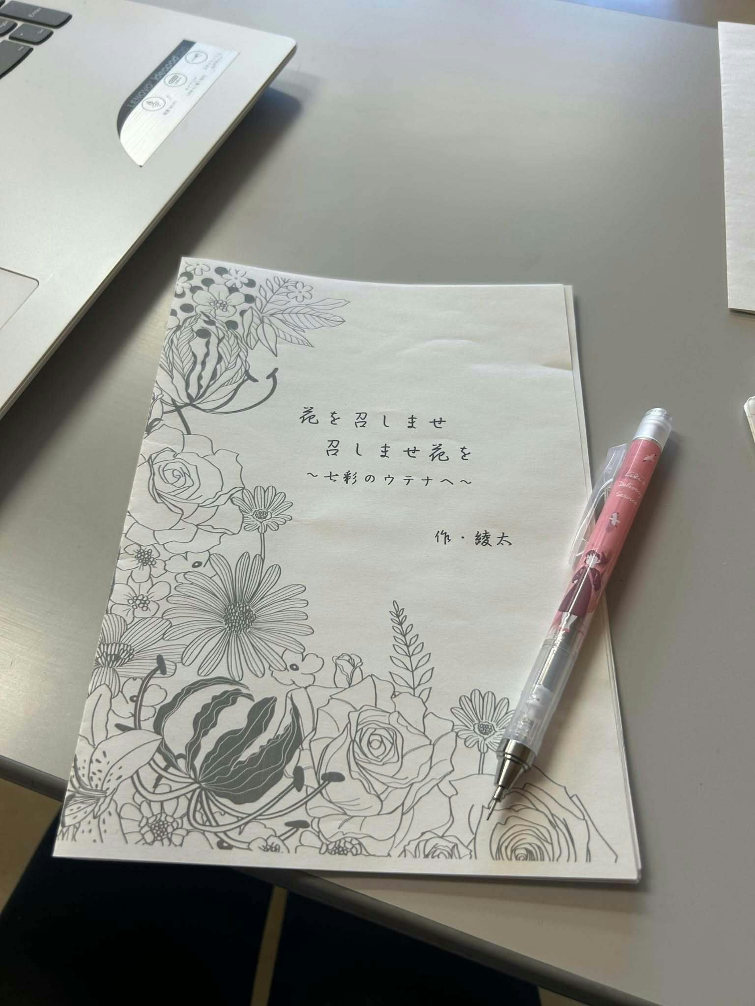 遂にこの日…!台本が配られました‼(一部)(笑)どきどきわくわくしながら早速初読み合わせも致しました。なっぷさんが初見とは思えないほどピッタリすぎて稽古場がざわつきました(笑)これで役作りしたらどうなっちゃうんだろう…(≧▽≦)3人だけじゃ無味無臭劇団でしたが、先輩方お二人がなんというか…もう…「味があるぅ~( ˘ω˘ )」一気に濃くなりました。話に深みが増して絶対面白い事間違いない‼18日の秦野稽古では立ち稽古にも入りました。乗り越えないといけない壁が遥かに高く感じました(笑)出来るだけ楽しんで乗り越えたいと思います…!さて、みなさんSNSの告知動画はチェックしてますか?なんと【花を召しませ 召しませ花を】が公演タイトルに本決定致しました♪元々、クラウドファンディングのテーマとして考えていたフレーズで女性だけのチーム…力強いもの…他の女性に憧れや勇気を与えられるような…そんな試行錯誤の中、戦後の「東京花売り娘」からとった一節です。BOWZの劇作家・綾太もタイトルはかなり悩んでいましたが…これをそのままタイトルにしたい…!ということでこちらに決定致しました。(起用されて嬉しい!)みなさんチケットの販売まだかまだかとお思いですよね?長らくお待たせしてしまって申し訳ありません…只今、急ピッチで作業に取り掛かっております!!!6月14日、15日はぜひぜひお友達、ご家族お誘い合ってスケジュールに入れておいてくださいね!!!!!なにしろ席が、600席あるんですから…('_')…【花を召しませ*召しませ花を】