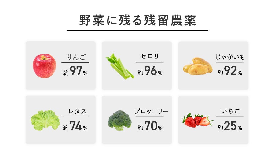 A できません。しかし野菜や果物の表面に付着した農薬や細菌は効果的に除去することができます。