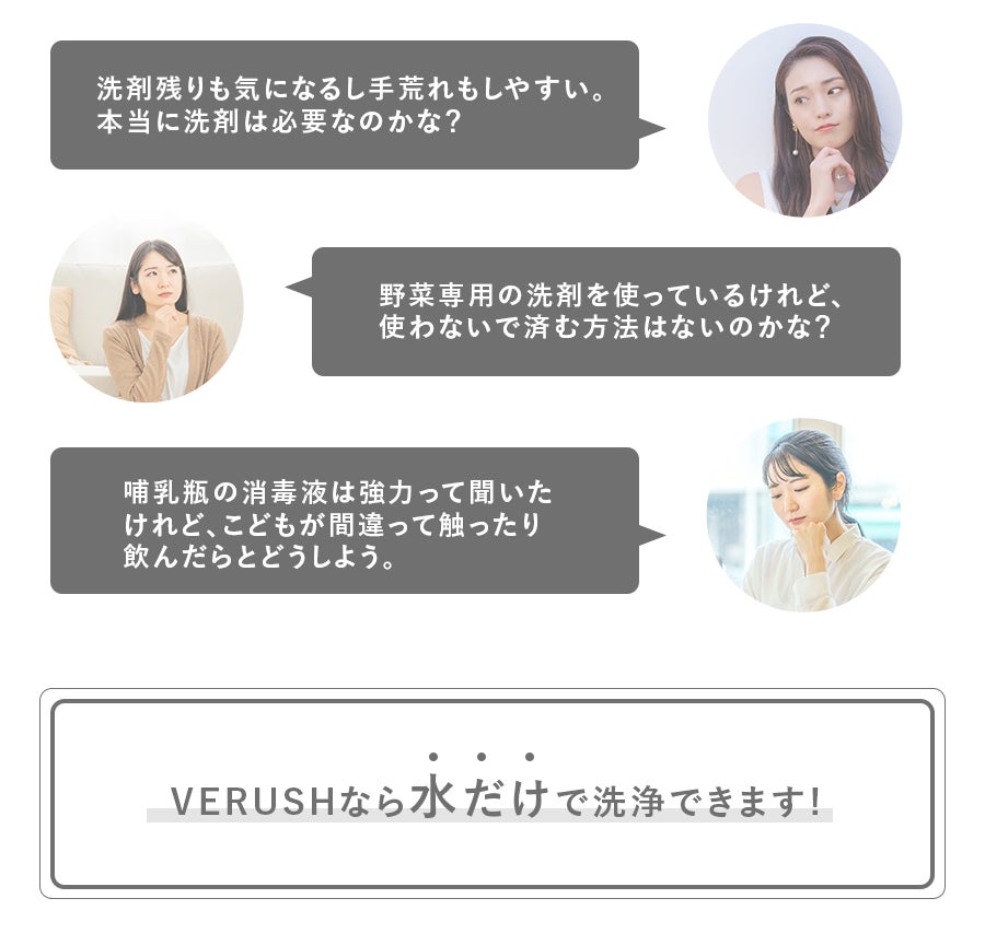 VERUSHは忙しい日々でも手間なく衛生を保ち、食の安全を保つお手伝いをします。