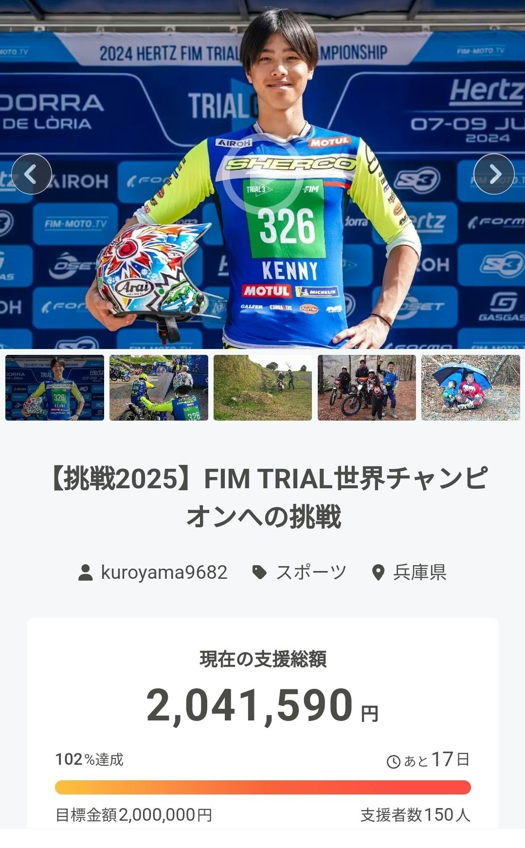 このプロジェクトは私の夢を実現するための大きな一歩です。皆様のご支援と応援があって初めて、世界の舞台で挑戦することができます。共にこの夢を追いかけ、成功を分かち合いたいと心から願っています。どうか、私の挑戦に力を貸していただけませんか?皆様と共に、2025年のトライアル世界選手権での勝利そして世界チャンピオンを目指します。