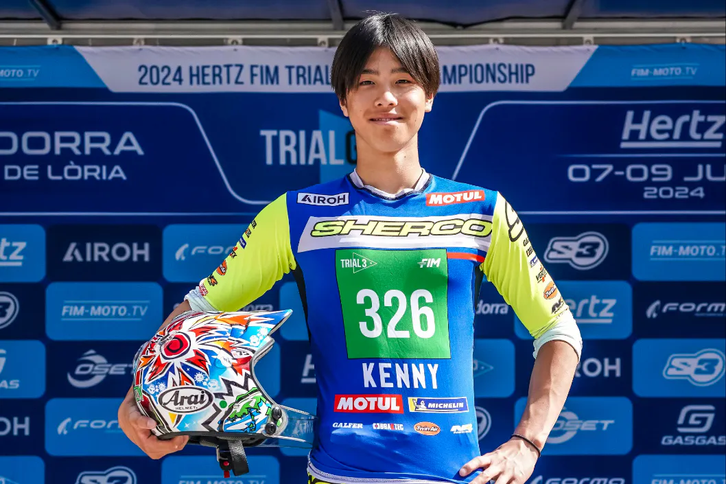 陣選手は、6歳からオートバイ競技トライアルを始め、国内外で数々の実績を積んできました。2024年にはFIMトライアル世界選手権【TRIAL3】クラスにスポット参戦し、最高順位8位、年間ランキング12位を獲得。また、国別対抗戦「トライアル・デ・ナシオン」では日本代表として世界一に輝くなど、確かな実力を証明しました。