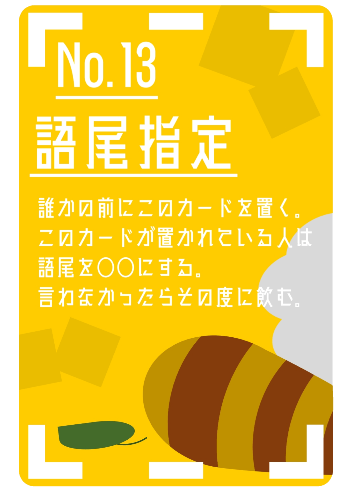 飲む量や回数、枚数など、使い方次第で非常に強力なカードになる一方で、対象のカードは選べない何が起こるかわからないトリッキーなカードです!!
