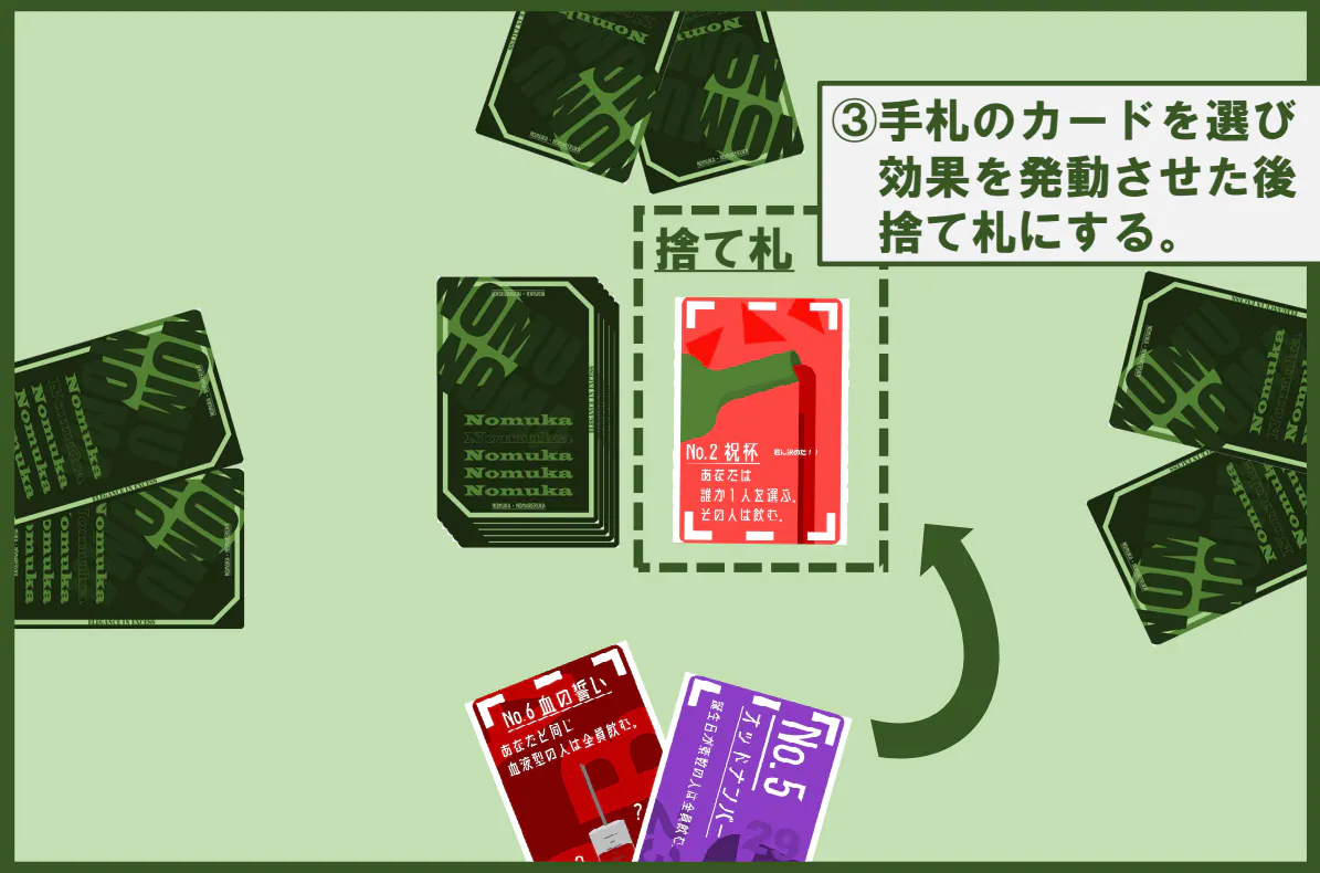 カードを引いて効果を発動し、相手にどんどんお酒を飲ませていきましょう!