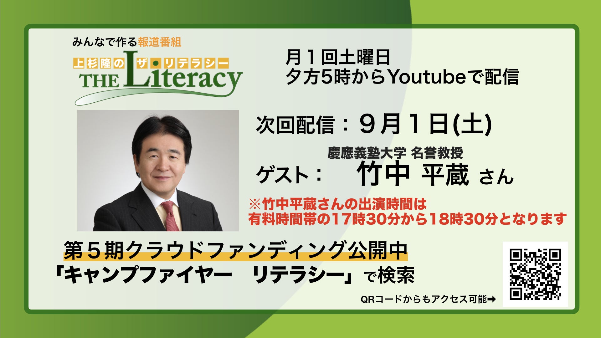 上杉隆の「ザ・リテラシー」9月1日(土)17時から生配信です。