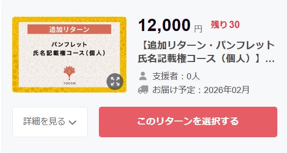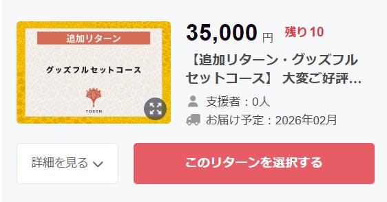 追加リターンはプロジェクトページで以下の画像で表示されています。
