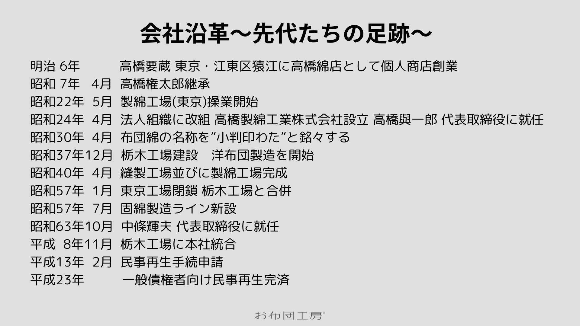 注)現在の社名は株式会社お布団工房です