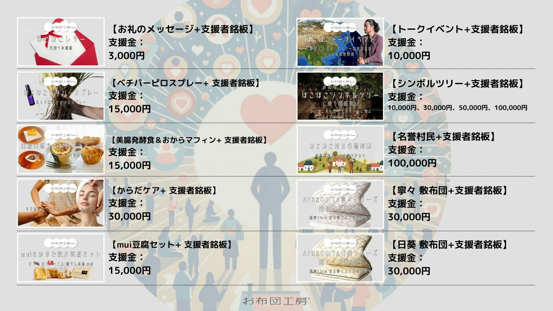 このプロジェクトは資金的な支援とともに、共感によるほこほこの輪っかが広がることにつながる仲間集めをしたいのです。直感で「なんか楽しそうだな」と感じていただけたらぜひとも仲間になってください。共に、ほこほこの輪っかが広がる世界をつくっていきたいですし、あなたのコミュニティとの重なりでお互いに助け合い、分かち合いたいですね。