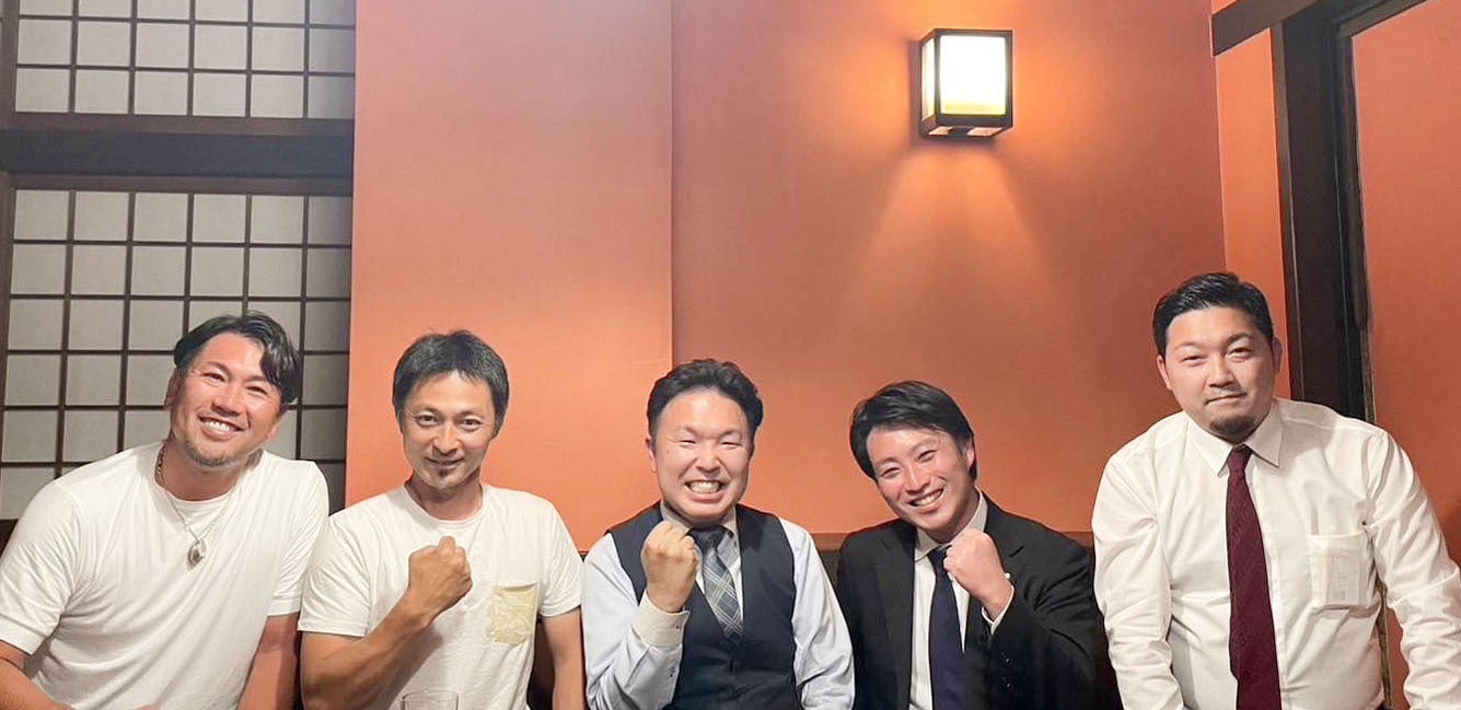 柏YEG副会長の武井、沼南商工会青年部部長の川村、柏YEG会長の西中、柏青年会議所理事長の狩野、そして私、柏YEG地域交流委員会委員長の中村です。