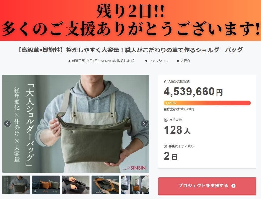 現在、【支援総額4,539,660円】【達成率1513%】【支援者数128名様】を突破!