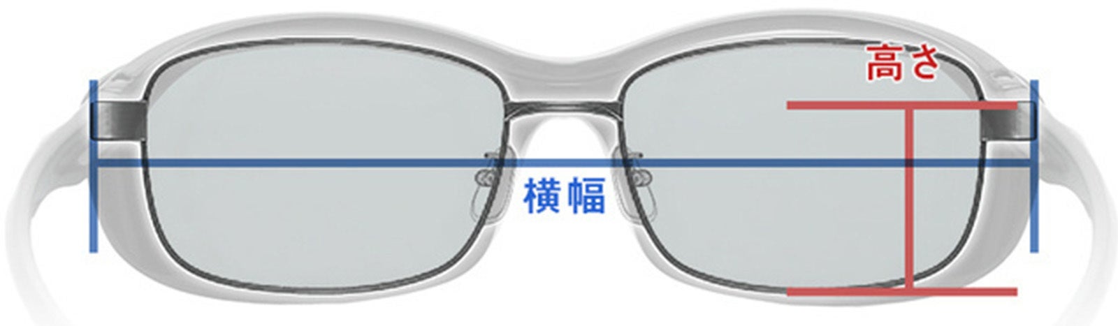 ※必ずご確認ください。 サイズについてのご注意・お手持ちのメガネのサイズをよくご確認のうえ、応援購入をお願します。 適合するサイズのフレームが、オーバーグラスに収まらない場合はご返品承ります。ご返品は商品到着後1週間以内に弊社宛(商品発送時に文章同送)に直接ご連絡の後、弊社確認の上でお願いいたします。 適合するサイズの高さは、ツルの根本の上から前枠の最下部までを基準にしています。(前枠の最上部から最下部ではございません)高さが30mmよも長くなると、メガネの前枠下部がオーバーグラスからはみ出てしまいますので、ご注意ください。