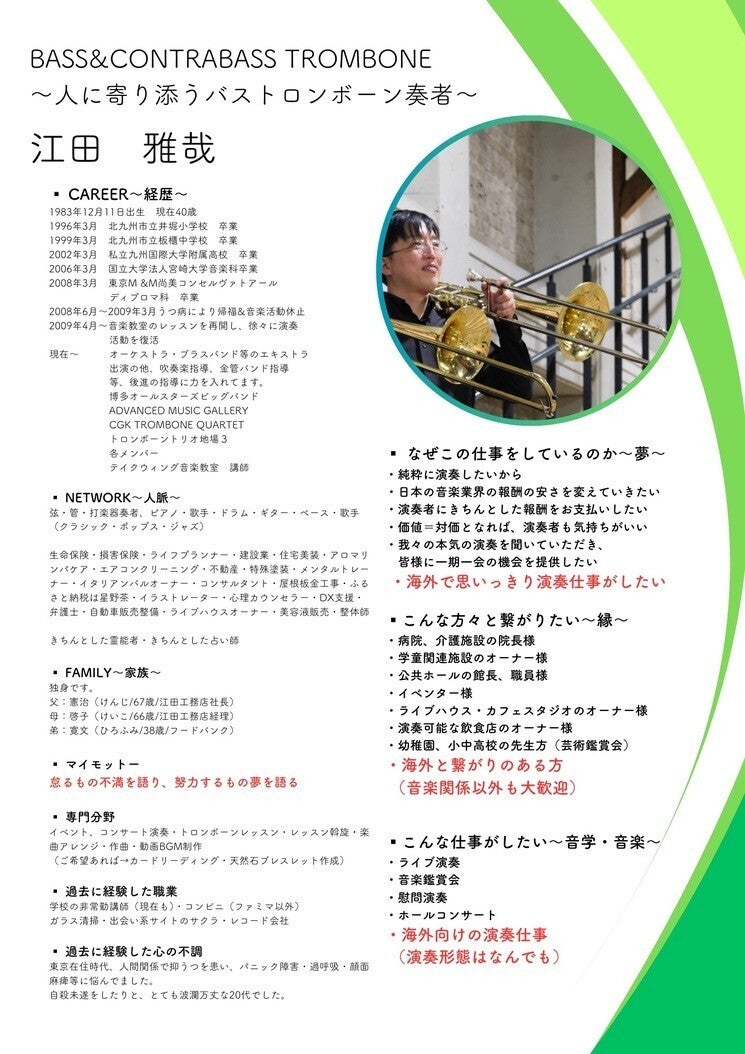 バストロンボーン奏者・江田雅哉公式Instagram:https://www.instagram.com/bass.posaune.masaya/