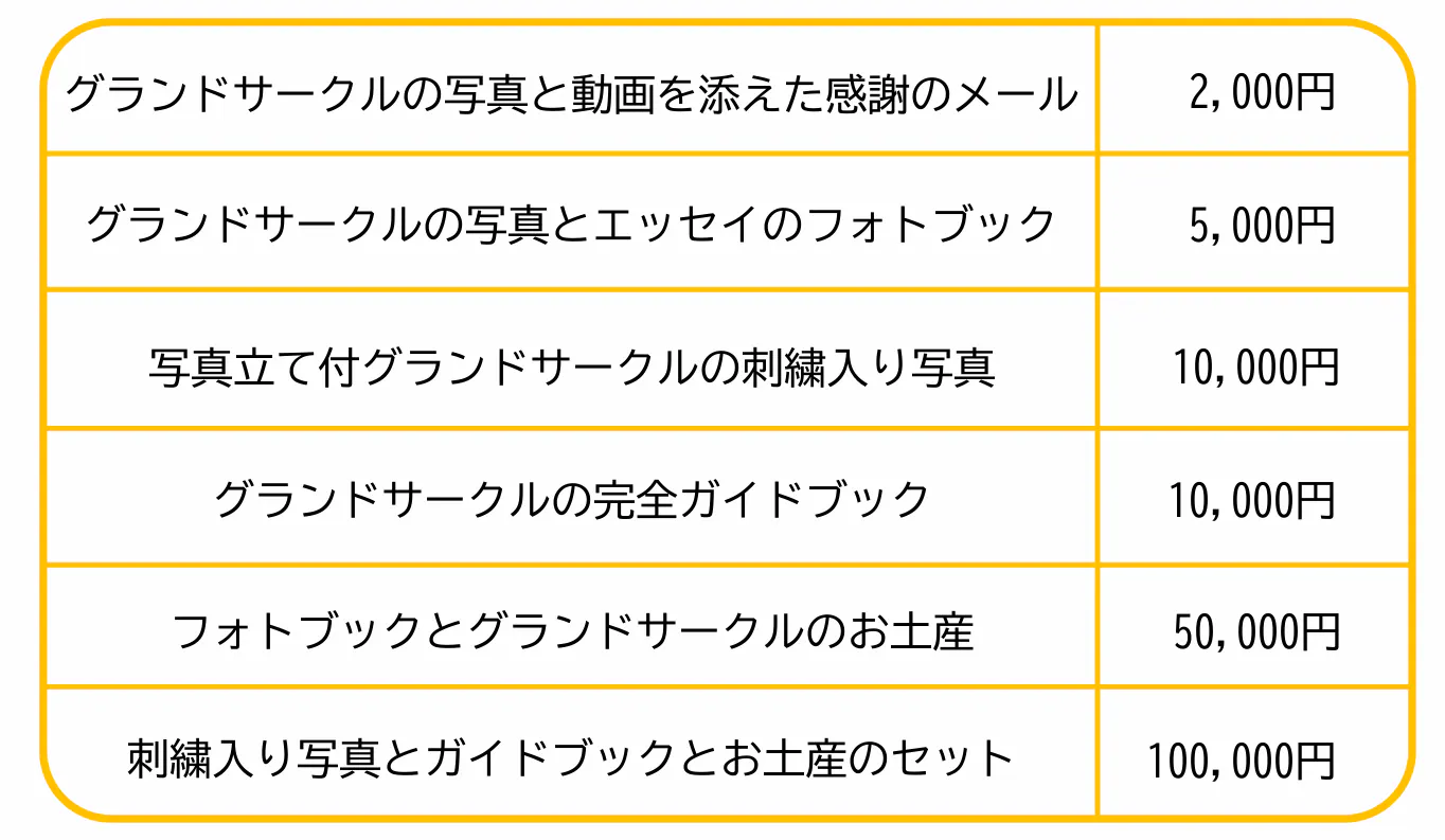 このロードトリップを実現するには、皆さんの力が必要です。いただいた支援金は、旅の費用(移動費、宿泊費など)に充てさせていただきます。そして、旅を通じて感じたことを写真や動画、フォトブック、ガイドブック、さらには現地で見つけた素敵なお土産という形で、皆さんにお返しします。