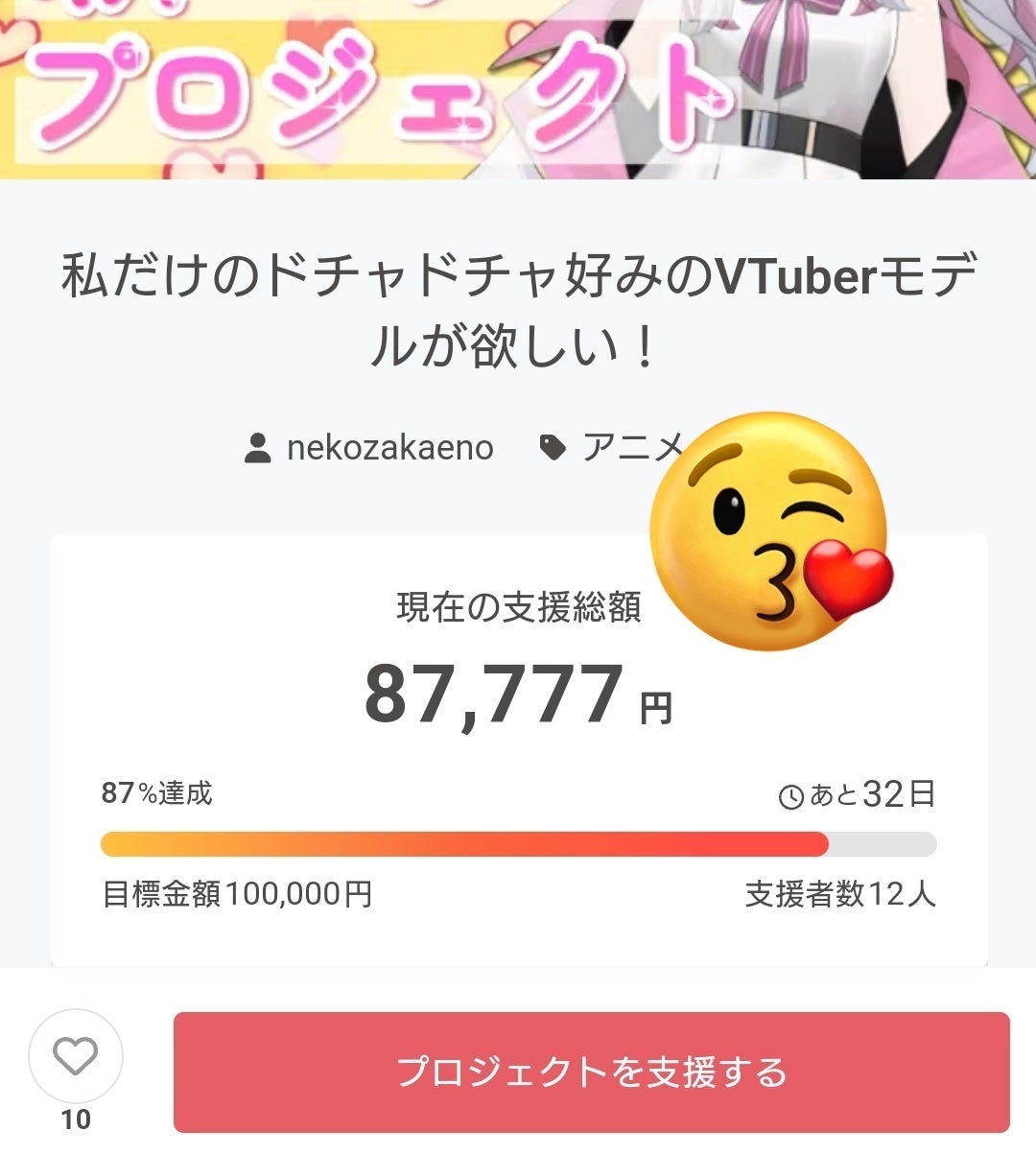 お疲れ様です。皆様のおかげで目標金額まであと一万円を切りました!ワ〜!期限が月末までなので目標金額行けるかな···!?と期待しちゃいます><また、お気に入り登録してくれた方もありがとうございます!すっっごく正直なことを言うと、毎日クラファンページを開いて金額を見てハァァ〜··となる生活って地味に精神的に疲れるので目標金額行ってスッキリしたい···!けど、それは私が面白い配信をして皆様に支援してもいいかなと思ってもらわないと叶わないことなので頑張ります!引き続きよろしくお願いいたします!