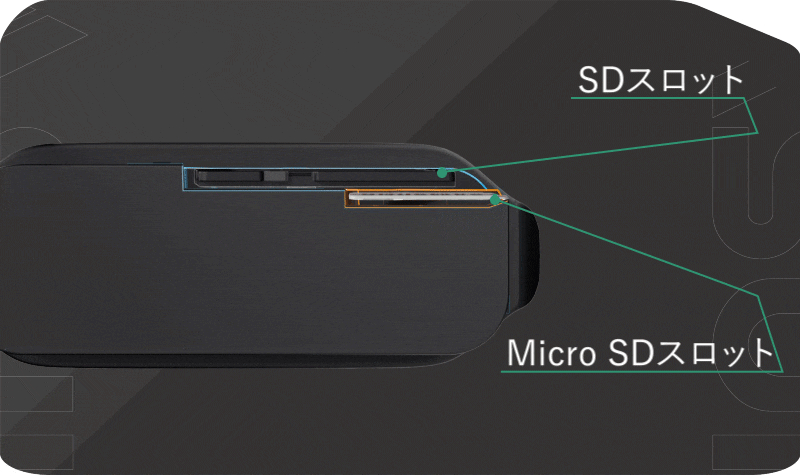 SDカードを入れたままMicro SDもスムーズに取り出せる工夫を凝らしたデザインで、スムーズに使用でき撮影に集中できます。