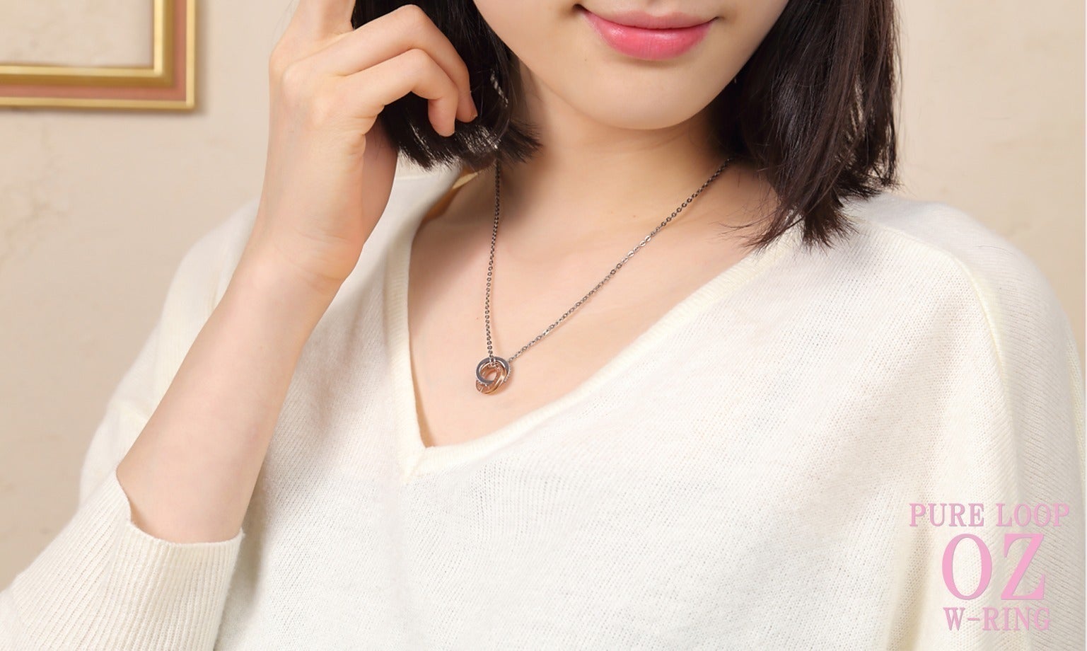 東大阪の町工場が60年の経験と技術で純チタンをスタイリッシュな磁気ネックレスに創り上げる。不動の人気NO,1のダブルリングが第3弾として登場!気品あるフォルムで18個のキュービックジルコニアがデコルテを美しく魅せる。管理医療機器 純チタン永久磁気ネックレスでつらい肩や首のコリ・血行の改善