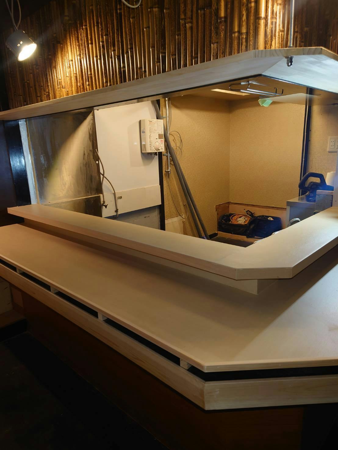 カウンターが出来上がり、一気にお寿司屋っぽくなってきました!