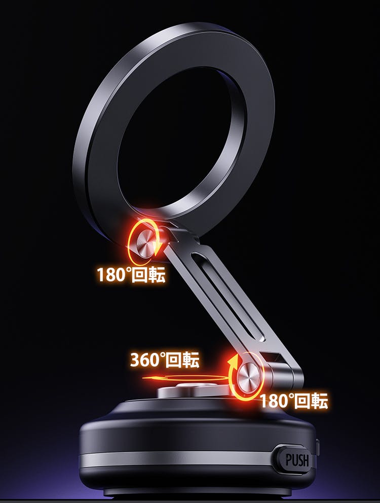 マグネットと真空吸着を組み合わせたスマートな設計により、跡を残さず、清潔で快適な使用が可能です。スマホやケースを傷つける心配もなく、平らな場所にスムーズに設置できます。この2WAY吸着スタンドは、机や壁、車、パソコンなど、あらゆる場所で簡単に固定でき、日常のさまざまなシーンで活躍します。