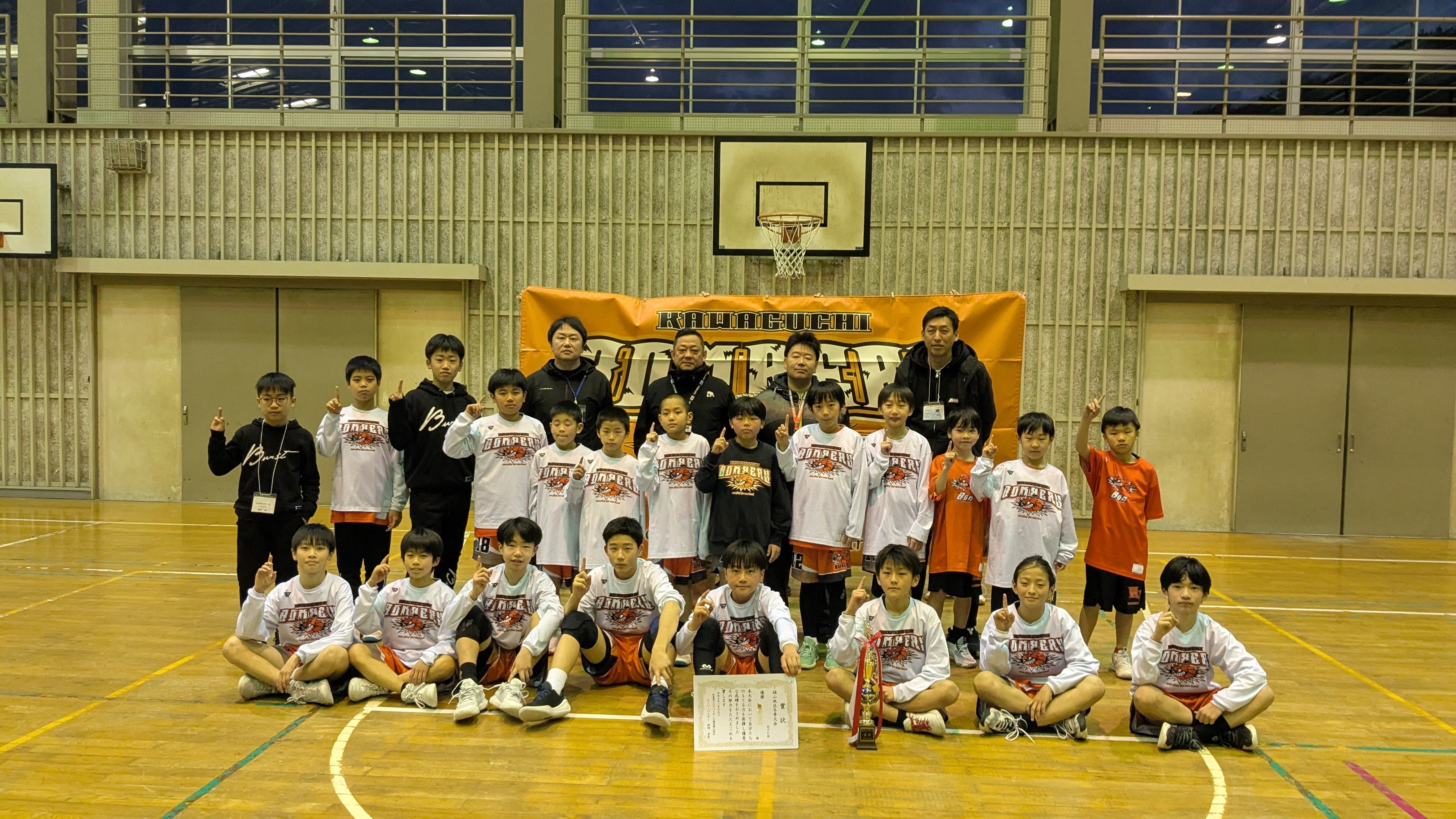私たちは広島県福山市で活動しているミニバスケットボールチーム「川口ボンバーズ」です。