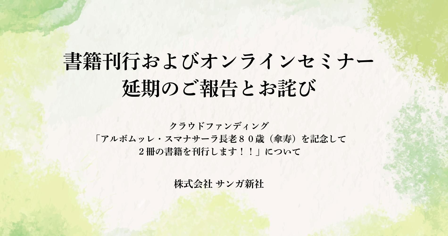「傘寿記念プロジェクト」のリターンは延期となりましたが、サンガ新社では、スマナサーラ長老の著作を一日でも早く、一冊でも多くお届けしたいとの想いから、既にご執筆済みでスマナサーラ長老にご負担のない著作について、近日中にクラウドファンディングで新刊の先行予約を開始させていただく予定です。まずは『ダンマパダ法話全集 第六巻』と『ダンマパダ法話全集 第一巻』の刊行を計画しております。