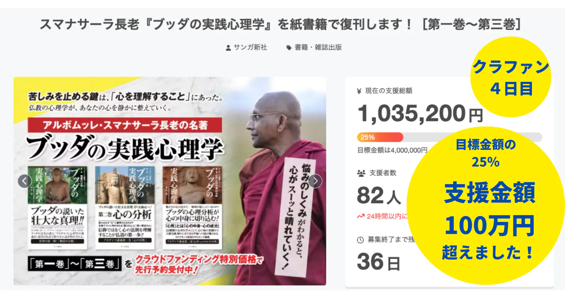サンガ新社では、現在、「スマナサーラ長老『ブッダの実践心理学』を紙書籍で復刊します![第一巻〜第三巻]」クラウドファンディングを実施しています。