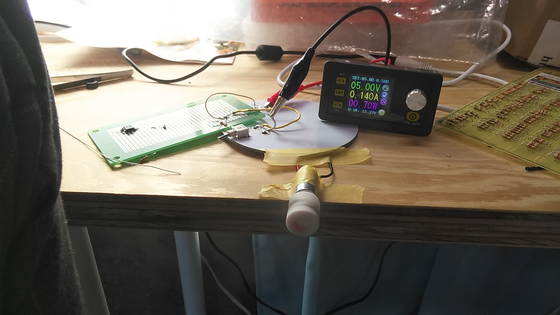 約1ヶ月前の5月19日、基板や扇風機の羽、モーターを組み合わせて動作や風量のチェックをしていました。ちょうどこの頃の東京都内は、連日気温30度に迫る暑さを記録し、5月とは思えない暑さでした。