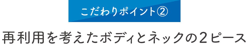 ネック部分に荷重がかかり最も劣化しやすいため、ネック部分を交換式にしてリユース性を高めています。また、接続部分に緩衝性を持たせることで強度も高まります。包装後にレールを滑り落としやすくするために内側に突起を設けるなど、ネックパーツが地味に一番開発に苦労しました。