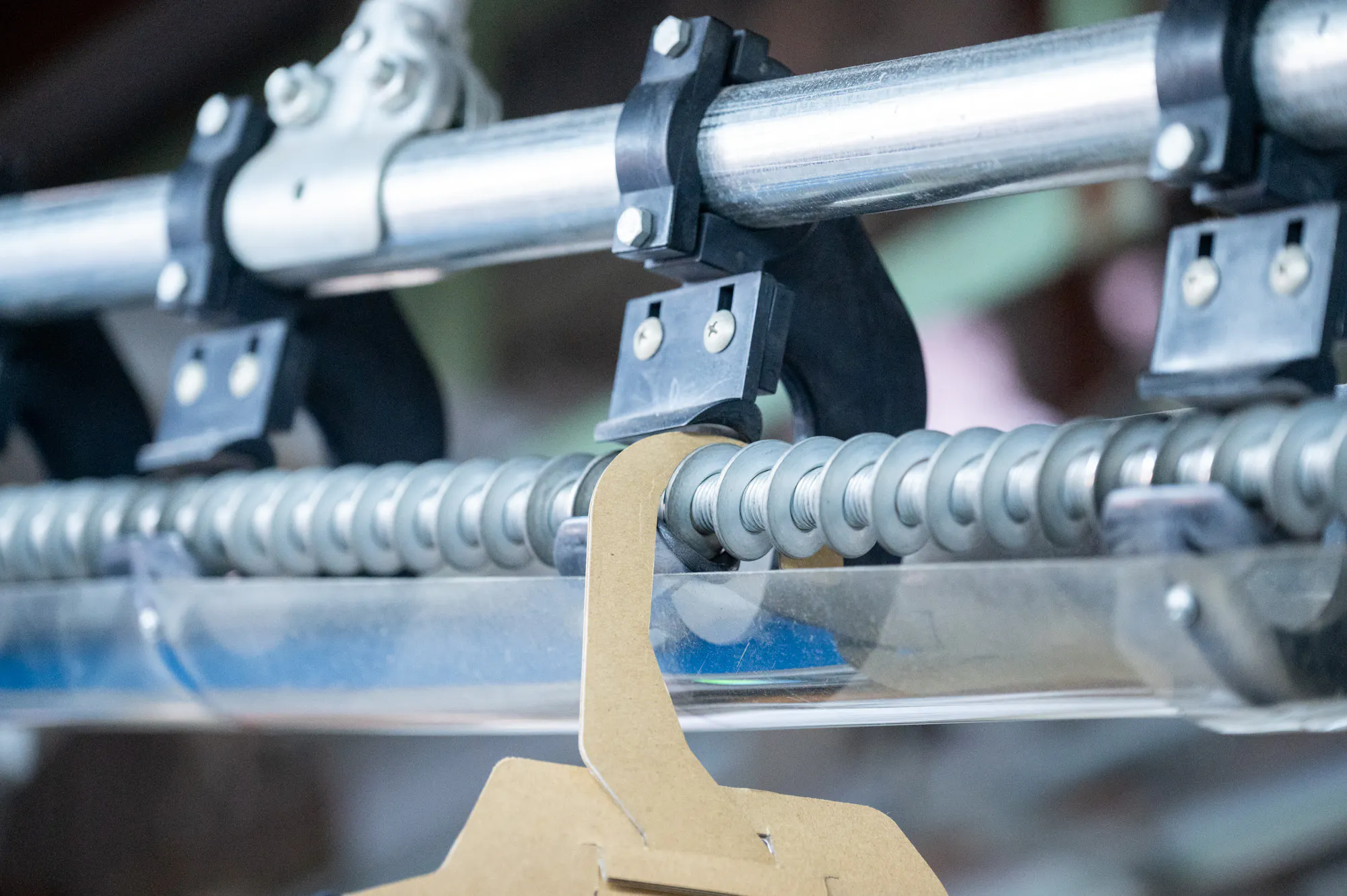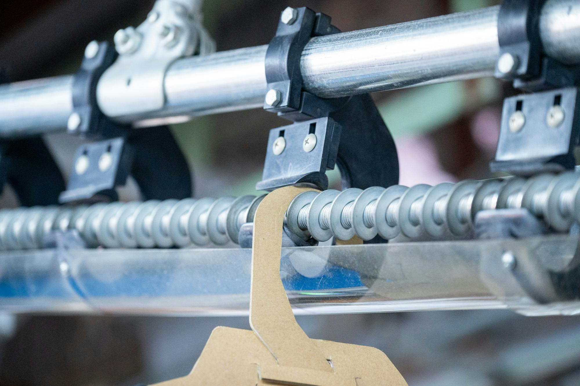 なお、カードボードハンガー専用の包装機の開発を0から行うと数千万円かかると言われていますが、まずはハンガーを流すレーン部分をカスタマイズするところから始めたいと考えています。