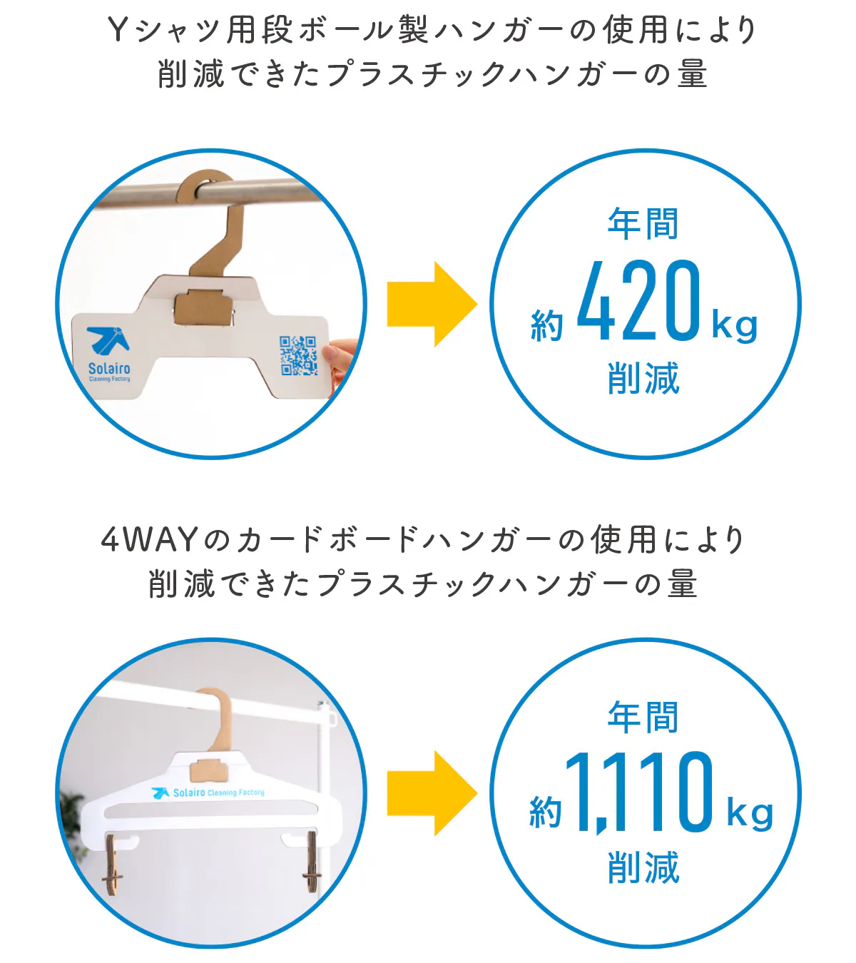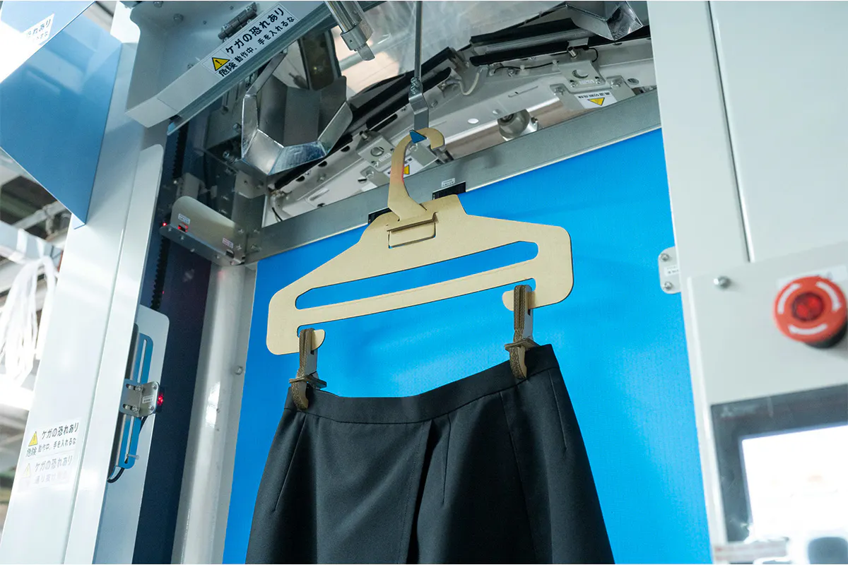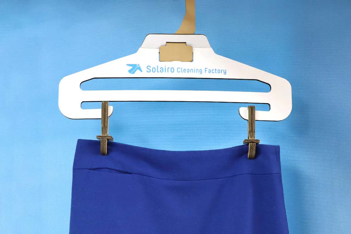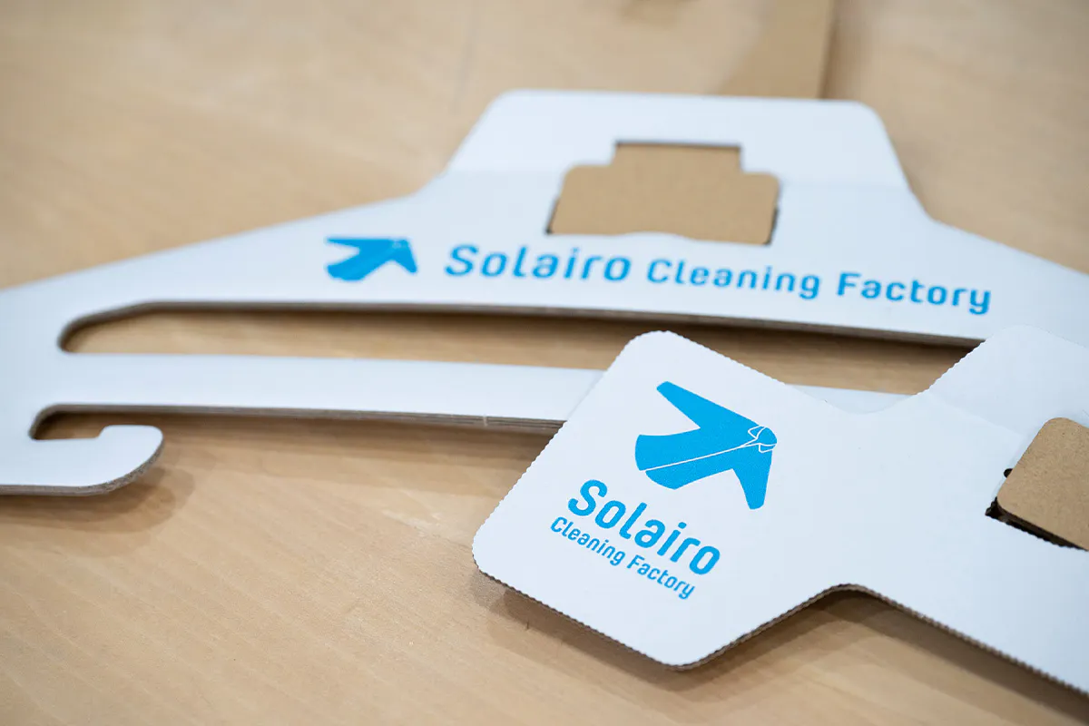 私たちは、2022年1月から段ボール会社(大国段ボール工業様)と共同開発をスタートし、まずは軽量タイプであるYシャツのクリーニング用の段ボール製ハンガーを2022年11月に完成させることに成功し、2023年4月からSolairoCFの4店舗での使用を実現しました。