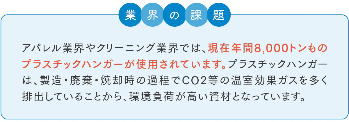 アパレル業界やクリーニング業界をはじめ、一般のご家庭へ「カードボードハンガー」※を広め、世の中の全てのプラスチックハンガーをこのハンガーに代替することで、温室効果ガスの排出量を削減し、脱炭素社会の実現に貢献したいと考えています。