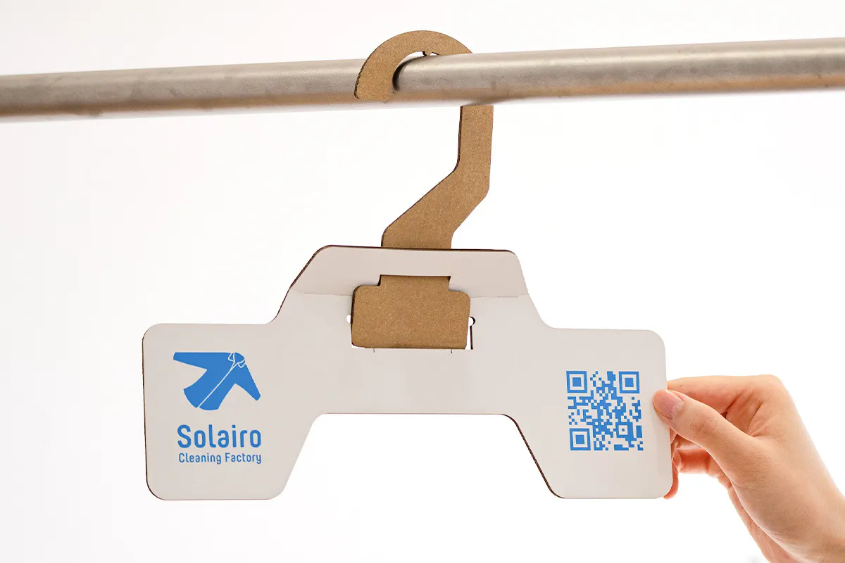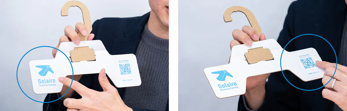 段ボールで作ることにより、プラスチックハンガーには無かったコミュニケーションスペースを生み出すことができました。ブランドロゴやメッセージなどを印刷できる自由なスペースです。