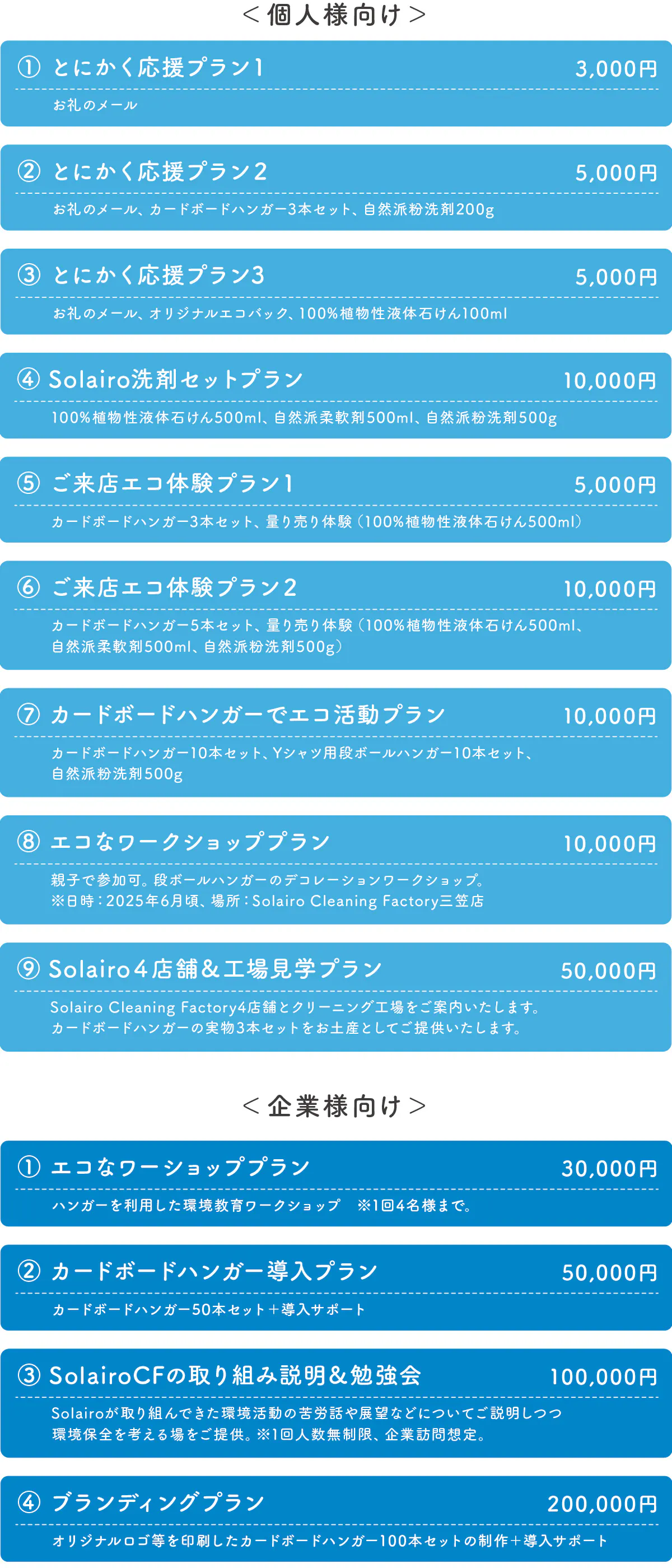 2025/03/30 07:173月28日をもちまして、【業界初!段ボール製「カードボードハンガー」で脱炭素社会の実現を加速させたい!】のクラウドファンディングは終了いたしました。おかげさまで、目標金額の70%を超える352,000円のご支援金をいただくことができました!ご協力いただいた皆さま、本当にありがとうございました。プロジェクトがスタートした時は低調な滑り出しだったため、とても心配しましたが、最後の1週間でぐんぐん伸びて70%に達しました。有難いことに、プロジェクトが終わってからもご支援を希望される声も頂きました。思い返せば、Solairo自体がコロナ真最中の2021年10月にスタートし、段ボールハンガーの開発は2022年2月からスタートしました。そこから1年でYシャツ用段ボールハンガー、2年でカードボードハンガーが完成しました。そして、グッドデザイン賞、福岡デザインアワード金賞等の受賞や、各種メディアでも取り上げていただくなど、反響はとても大きなものでした。とは言え、まだ当社の4店舗でしか使用していないため、環境インパクトは限定的です。これをいかに広めていくかを考える中で、クラウドファンディングに挑戦することになりました。そして、今回のクラウドファンディングを始めたところ、全国からご支援と温かいお言葉の数々を頂き、本当に励まされました。本当に嬉しかったです。ありがとうございました。私たちの取り組みの意味を分かってくださる方々が全国にいらっしゃるという勇気も頂きました。↑の写真の手書きのメッセージにもありますが、これらのご支援金、お言葉を大切にして、今後ますます活動をスピード感を持って邁進してまいりたいと思いますので、今後とも引き続きこの取り組みを応援いただければ幸いです。また、改めて活動をご報告できればと思いますが、まずは活動報告を持ちましてお礼を申し上げます。この度は、本当にありがとうございました。Solairo Cleaning Factory 毛利明光&松本岳志 もっと見る