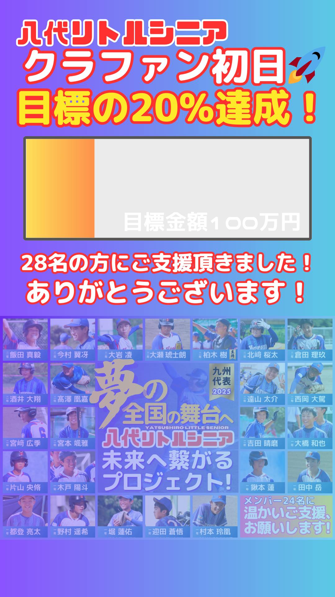 ありがたいことに、クラウドファンディング初日からたくさんのご支援を頂き、目標金額である100万円のうち20%を達成することが出来ました!