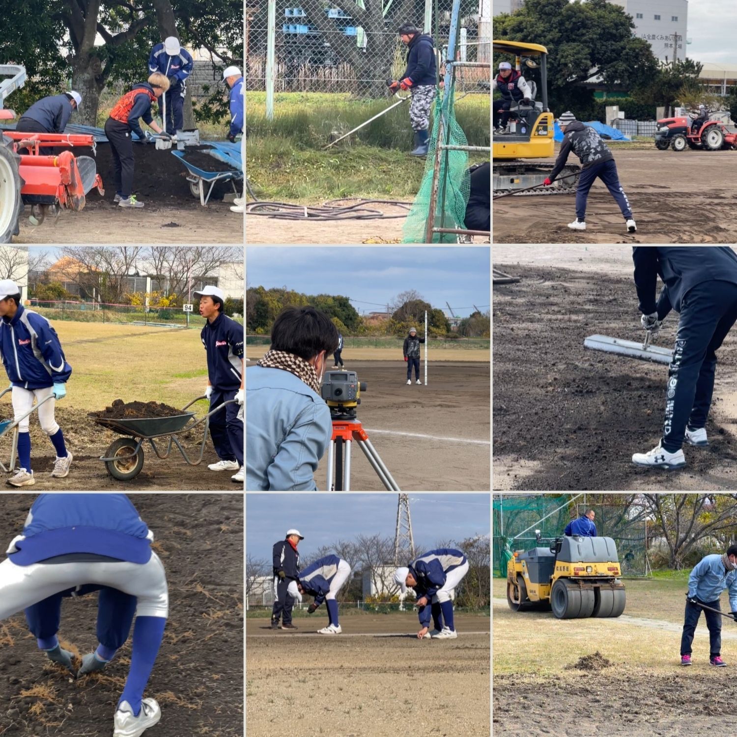 年末に地元の企業様が提供してくださっている専用グラウンドのメンテナンスを実施しました。
