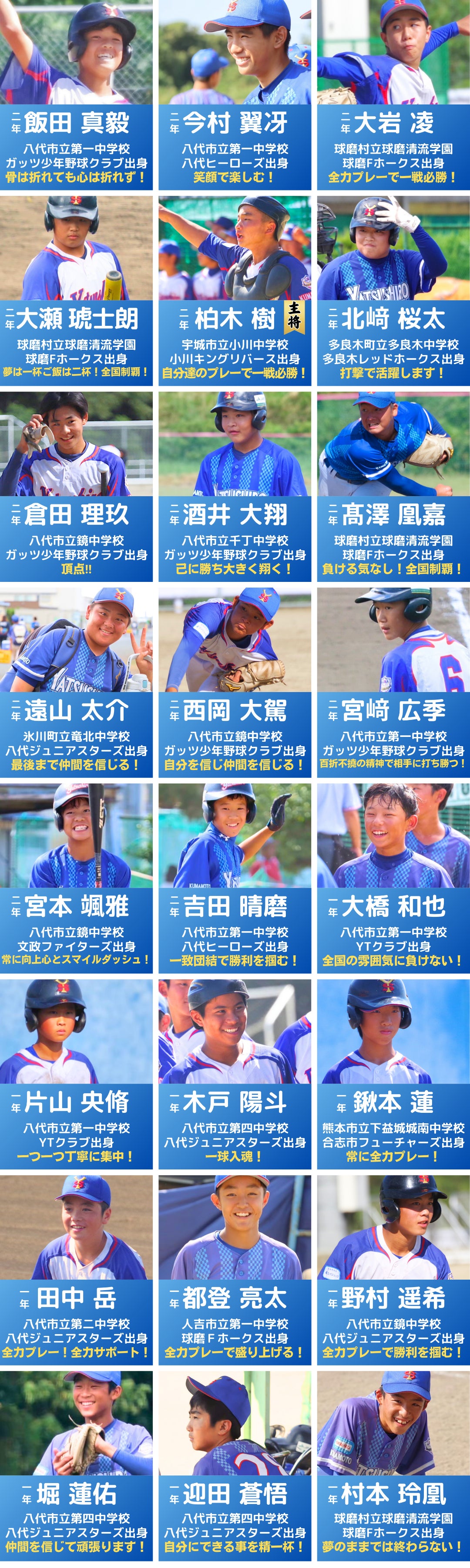「八代リトルシニア」は1999年創部以来26年目を迎える、熊本県八代市を拠点とする中学硬式野球チームです。(人吉・球磨・城南の選手も所属)
