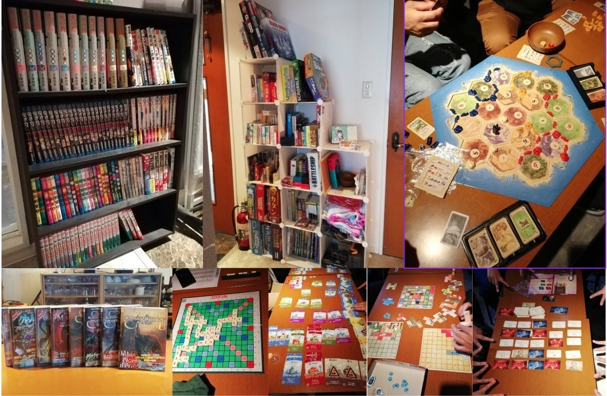 2021年2月に営業を開始した当店、店内には飲食設備のほか、音響装置・PCやプロジェクター、ホワイトボード、ネット配信機材、防音室、ボードゲーム・TRPGなど各種、漫画やコミュニケーションに関する書籍などを設置しています。