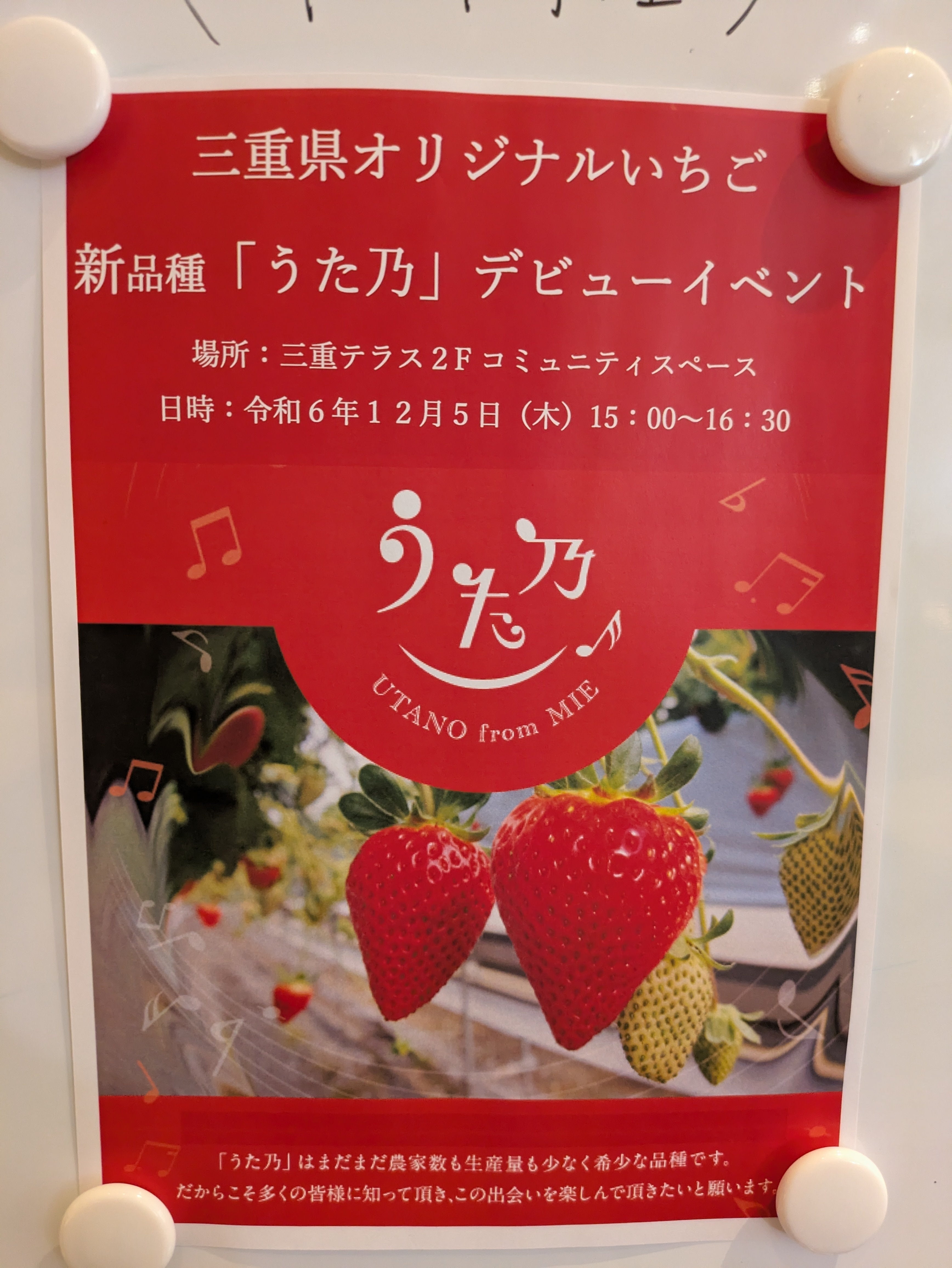 「うた乃」は、三重県限定のオリジナル品種で今季デビューしたばかりのいちご品種になります。