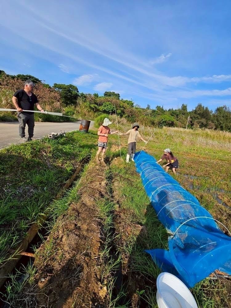 その後は、また田んぼに戻り皆さんと手植えを行い、そしてさらに300坪の水田用の苗床を作りました。