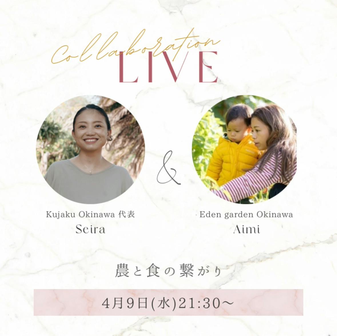Kujaku Okinawa 代表のセイラさんとインスタライブを行います*