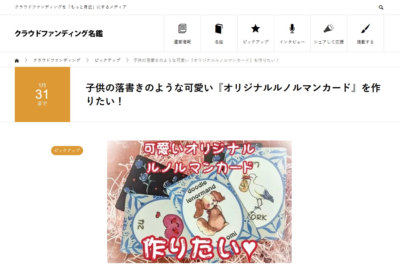 ◆『クラウドファンディング名鑑』に載せて頂きました◆