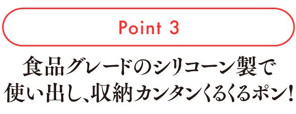耐熱シリコーン(ゴム)成型でフレキシブルに扱え、また丸めてコンパクトになる