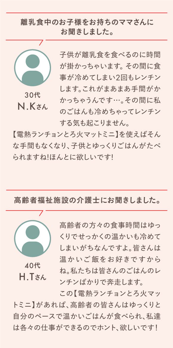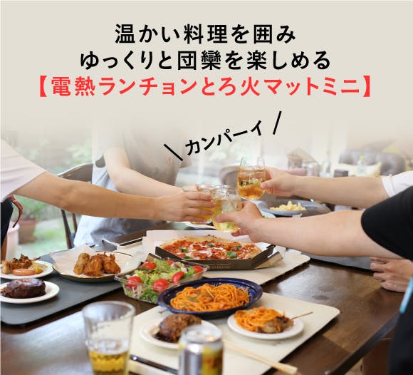 最後にこの「電熱ランチョンとろ火マットミニ」が温かいご飯を食卓を囲んでゆっくりと楽しんでもらうサポーターの