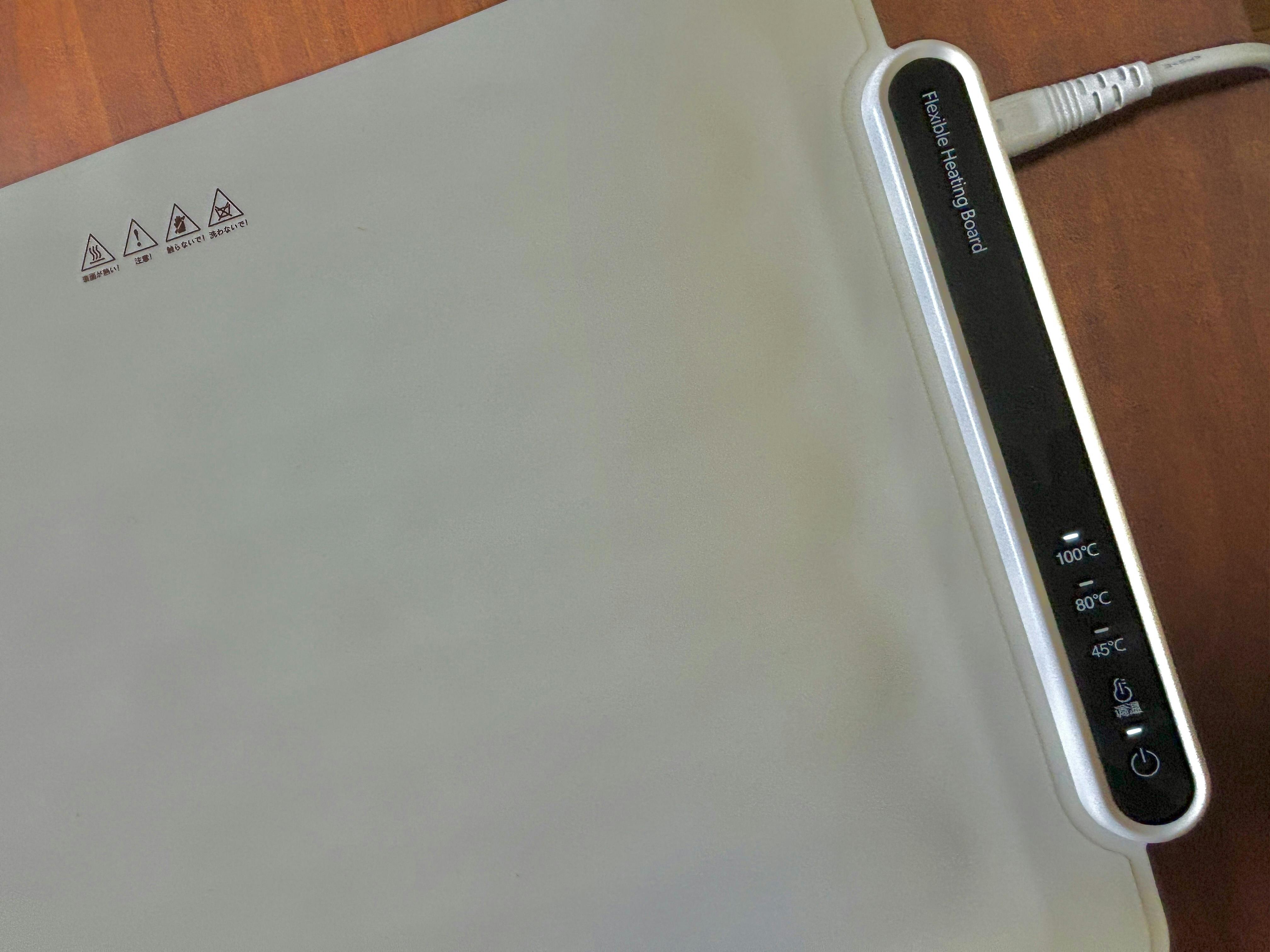 【電熱ランチョンとろ火マットミニ】は、45℃、80℃、100℃と3段階の温度設定が可能です。