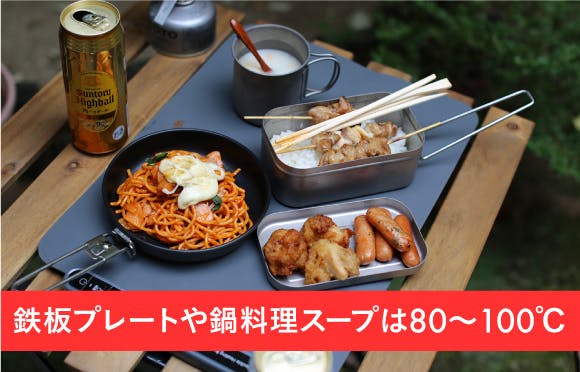 鉄板プレートやお鍋料理は80〜100℃で。その日の作る料理によって最適な温度調節が可能であります。電熱ランチョンとろ火マットミニ】があれば、煮詰まったり、焦げたりしないので、鍋料理や鉄板料理に卓上コンロの出す手間いらず。